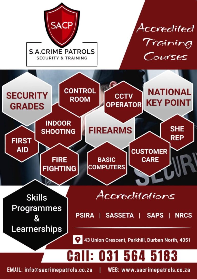 S.A Crime Patrols is a PFTC, SAPS & PSIRA accredited training centre based in Kwa-Zulu Natal, South Africa